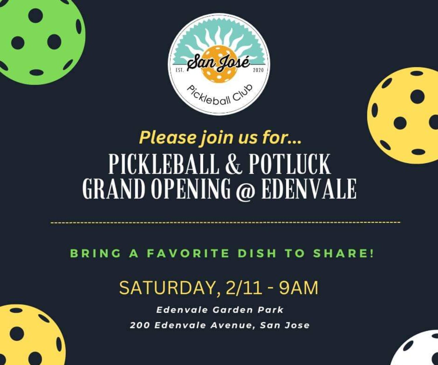 News 10 Feb 2023 Edenvale Park Pickleball Grand Opening We did it! There are finally pickleball court overlays at Edenvale Park. To celebrate let's host another famous SJPC potluck… Kenji Miwa
