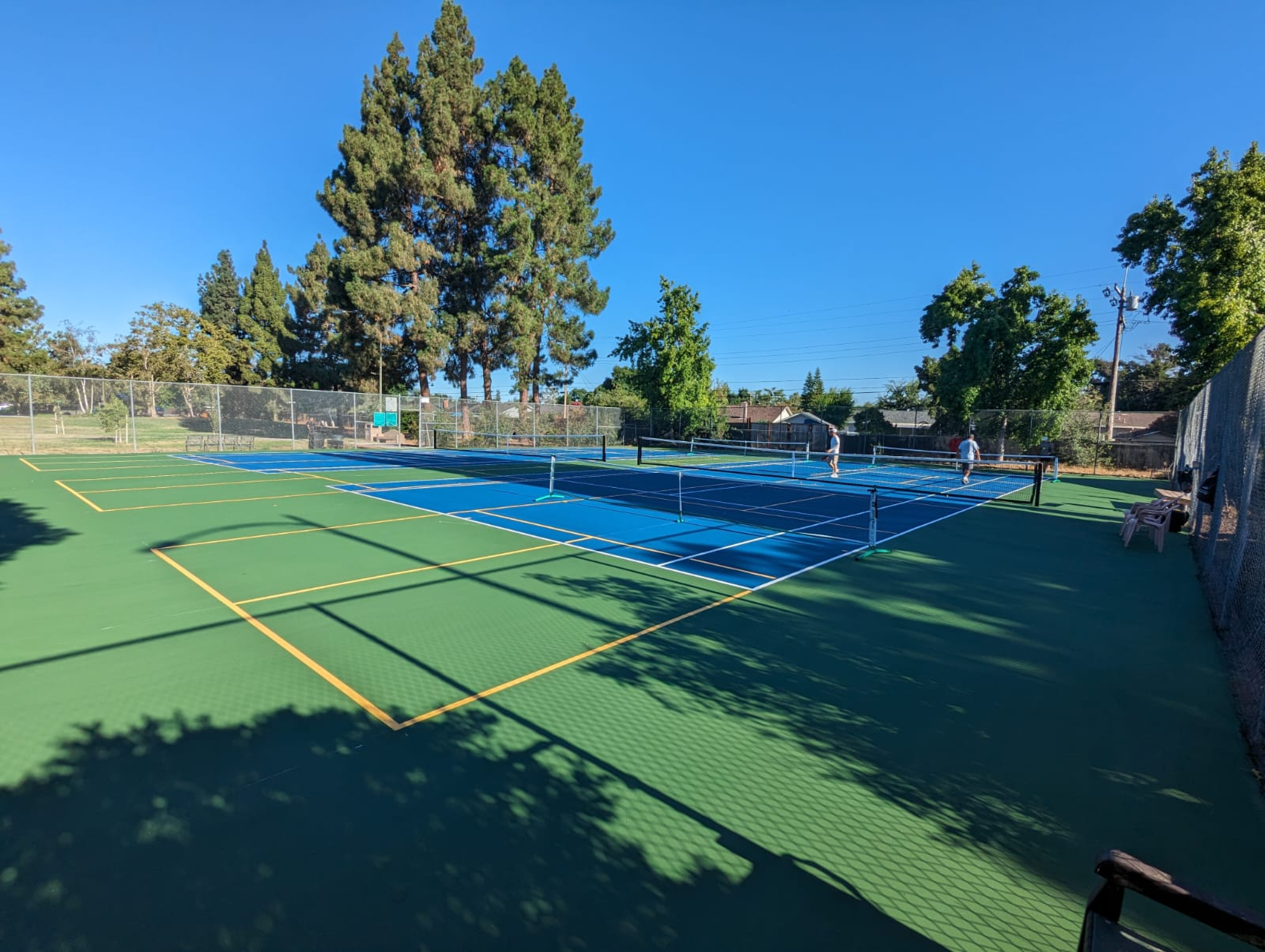 Six dedicated pickleball courts located on West Valley College campus between track and tennis courts